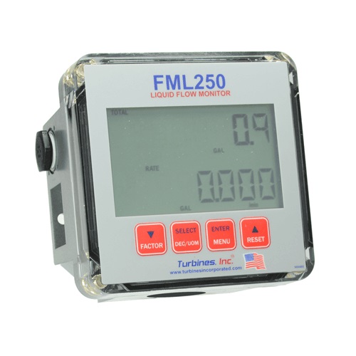 FML250 流量監測器可顯示速率和總量,並可與任何 Turbines Inc. 流量計無縫整合。